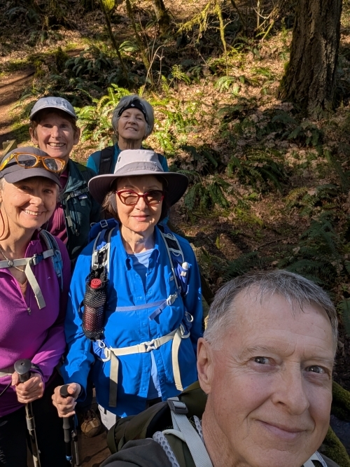 It was a perfect day for a hike. Ideal weather, uncrowded and spring flowers popping up including Trillium and Oregon Iris. We hiked a 7.5 miles mix of trails featuring the Bonzi Trail. There was only one downed tree on the trail from the fall wind storm that presented a minor obstacle. Hikers were, Pam Thomas, Elly Collier, Bev Hassel and Lisa Cenotto. Steve Engler was the trip leader.